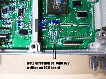 Turn the ECU back over to the front side and take a look again at the 74hc373 chip location. Take note of the direction of the writing on the ECU board: